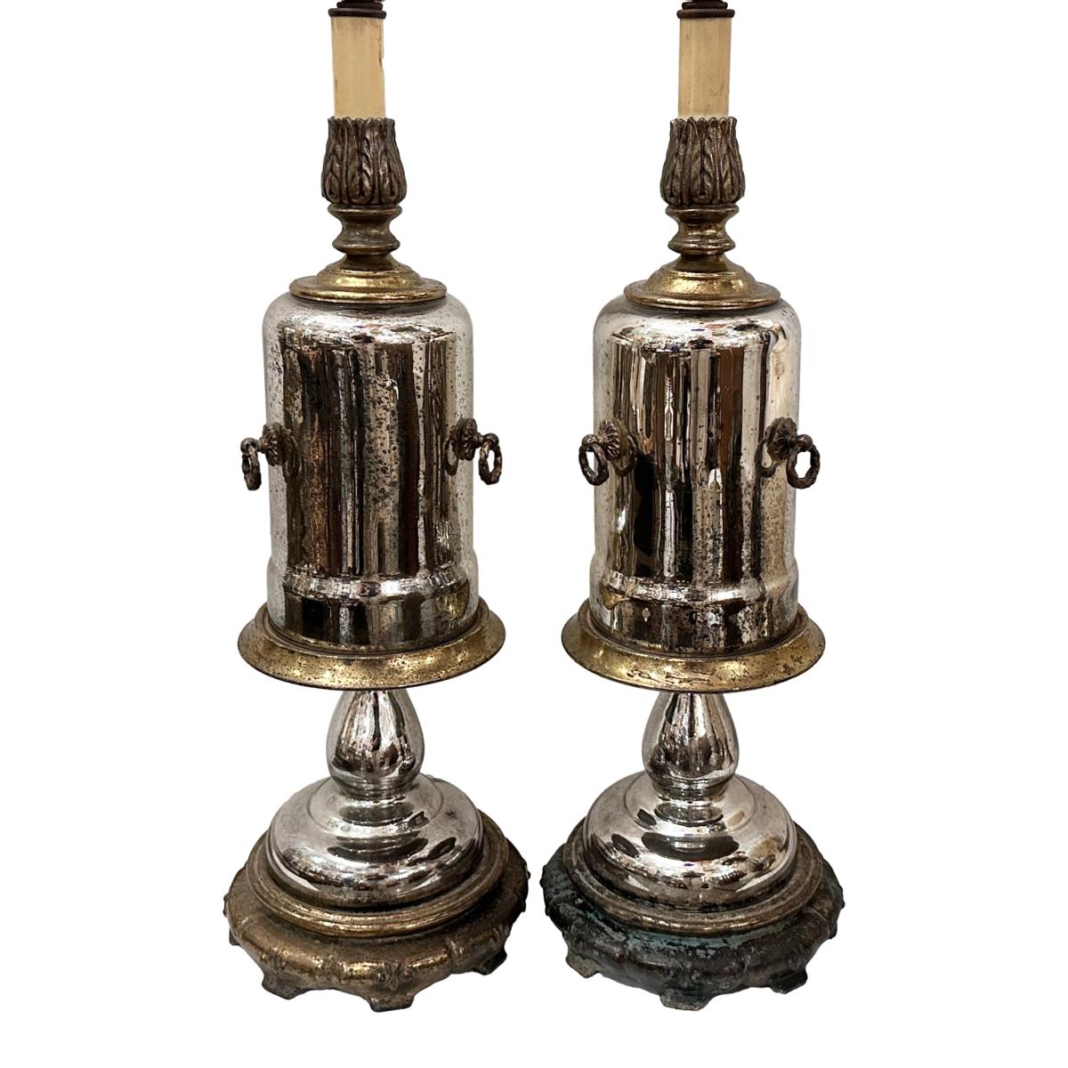 Pair of circa 1920's French mercury glass table lamps with original metal bases.